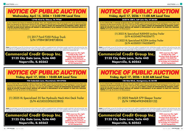 NOTICE OF PUBLIC AUCTION Friday, April 17, 2026 • 10:00 AM Local Time