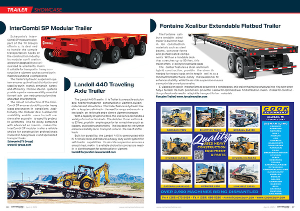 The robust construction of the Inter- Combi SP ensures durability under heavy loads and challenging conditions. Additionally, the modular design allows for scalability, enabling users to configure the trailer according to specific project requirements. This flexibility, combined with advanced engineering, makes the InterCombi SP modular trailer a reliable choice for construction professionals involved in heavy haulage and specialized transport tasks. Scheuerle( TII Group) www. tii-group. com