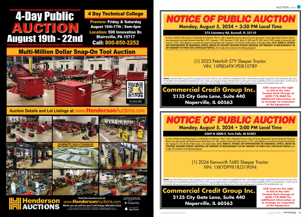 NOTICE OF PUBLIC AUCTION Monday, August 5, 2024 • 2:00 PM Local Time