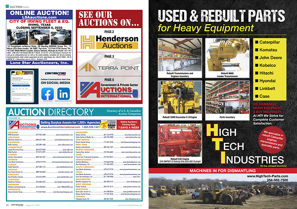 MISSISSIPPI Deanco Auction........................................... 601-656-9768.......................... www. deancoauction. com Taylor Auction & Realty, Inc......................... 662-226-2080............................ www. taylorauction. com NEW MEXICO Hansen Auction Group................................ 715-265-4656................. www. hansenauctiongroup. com NEW YORK Auctions International................................. 800-536-1401................ www. auctionsinternational. com NORTH CAROLINA Country Boys Auction.................................. 252-946-6007.................. www. countryboysauction. com OHIO Frey & Sons, Professional Auctioneers............ 419-445-0015............................. www. freyandsons. com PENNSYLVANIA Hartland Machinery.................................... 724-368-9788...................... www. HartlandAuctions. com Hess Auctioneers, LLC.................................. 717-426-2493........................ www. hessauctioneers. com SOUTH CAROLINA Joey Martin Auctioneers.............................. 678-673-9194.............. www. joeymartinauctioneers. com TEXAS Joey Martin Auctioneers.............................. 678-673-9194.............. www. joeymartinauctioneers. com Lone Star Auctioneers, Inc........................... 817-740-9400............................................. www. LSA. cc WASHINGTON Meridian Equipment Inc.............................. 360-398-2141.............................. www. meridianeq. com WEST VIRGINIA Partner Auctions......................................... 304-701-0175....................... www. partner-auctions. com WISCONSIN Great Lakes Auction Co............................... 414-788-8254...................... www. greatlakesauction. net Hansen Auction Group................................ 715-265-4656................. www. hansenauctiongroup. com CANADA Champion Assets Ltd................................... 306.865.7660........................... www. championassets. ca
