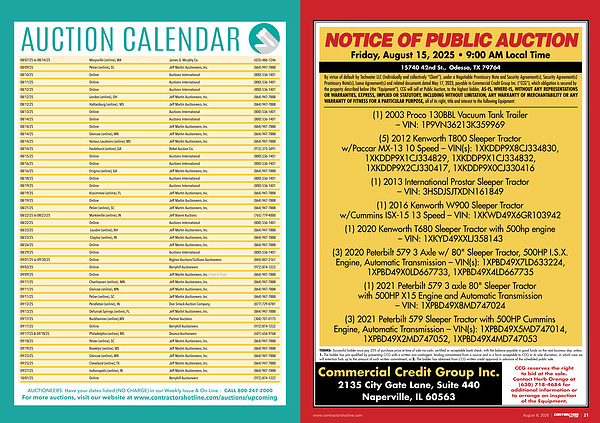 NOTICE OF PUBLIC AUCTION Friday, August 15, 2025 • 9:00 AM Local Time