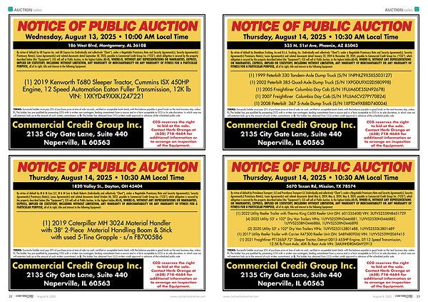 NOTICE OF PUBLIC AUCTION Thursday, August 14, 2025 • 10:30 AM Local Time