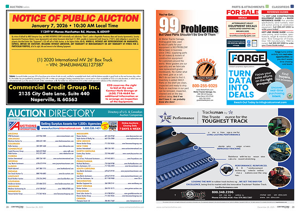 MISSISSIPPI Deanco Auction........................................... 601-656-9768.......................... www. deancoauction. com Taylor Auction & Realty, Inc......................... 662-226-2080............................ www. taylorauction. com NEW MEXICO Hansen Auction Group................................ 715-265-4656................. www. hansenauctiongroup. com NEW YORK Auctions International................................. 800-536-1401................ www. auctionsinternational. com NORTH CAROLINA Country Boys Auction.................................. 252-946-6007.................. www. countryboysauction. com OHIO Frey & Sons, Professional Auctioneers............ 419-445-0015............................. www. freyandsons. com PENNSYLVANIA Hartland Machinery.................................... 724-368-9788...................... www. HartlandAuctions. com Hess Auctioneers, LLC.................................. 717-426-2493........................ www. hessauctioneers. com SOUTH CAROLINA Joey Martin Auctioneers.............................. 678-673-9194.............. www. joeymartinauctioneers. com TEXAS Joey Martin Auctioneers.............................. 678-673-9194.............. www. joeymartinauctioneers. com Lone Star Auctioneers, Inc........................... 817-740-9400............................................. www. LSA. cc WASHINGTON Meridian Equipment Inc.............................. 360-398-2141.............................. www. meridianeq. com WEST VIRGINIA Partner Auctions......................................... 304-701-0175....................... www. partner-auctions. com WISCONSIN Great Lakes Auction Co............................... 414-788-8254...................... www. greatlakesauction. net Hansen Auction Group................................ 715-265-4656................. www. hansenauctiongroup. com CANADA Champion Assets Ltd................................... 306-865-7660........................... www. championassets. ca