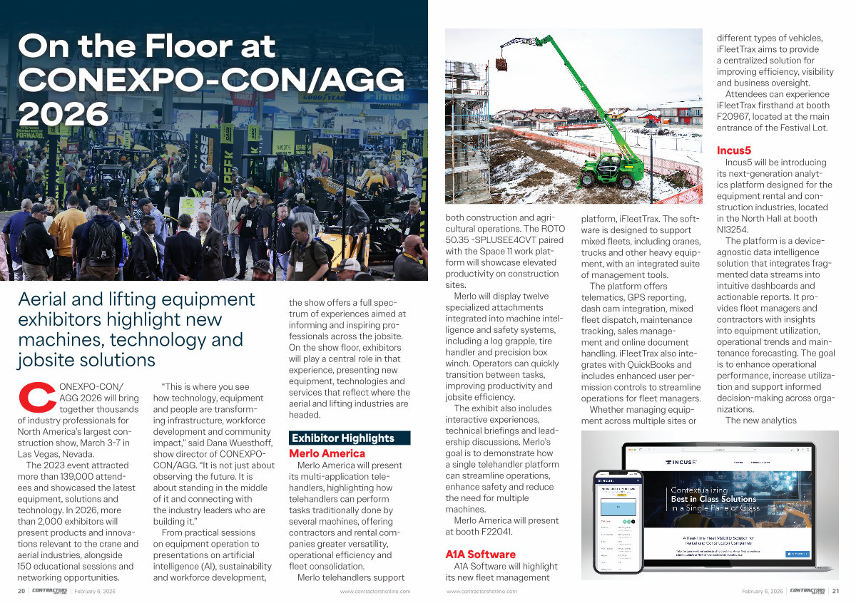 Merlo America will present at booth F22041. platform, iFleetTrax. The software is designed to support mixed fleets, including cranes, trucks and other heavy equipment, with an integrated suite of management tools.