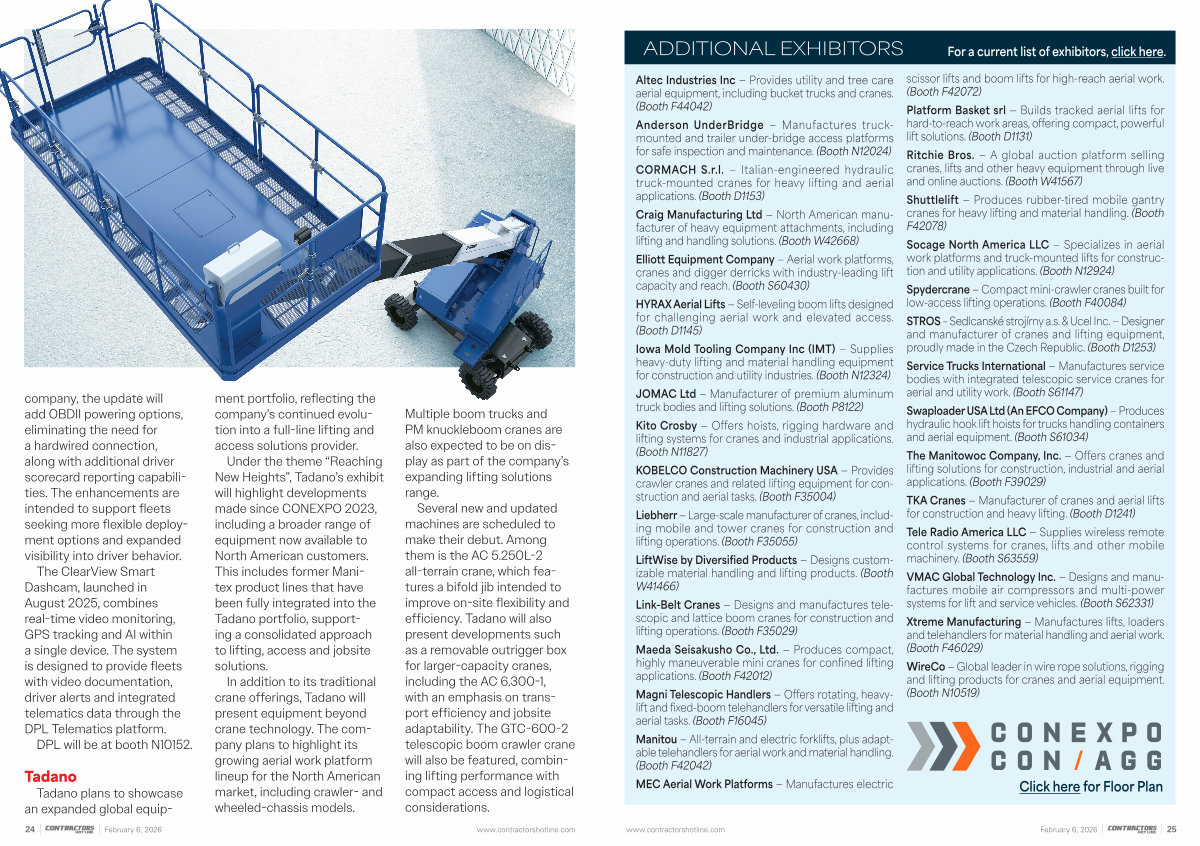 Under the theme“ Reaching New Heights”, Tadano’ s exhibit will highlight developments made since CONEXPO 2023, including a broader range of equipment now available to North American customers. This includes former Manitex product lines that have been fully integrated into the Tadano portfolio, supporting a consolidated approach to lifting, access and jobsite solutions.