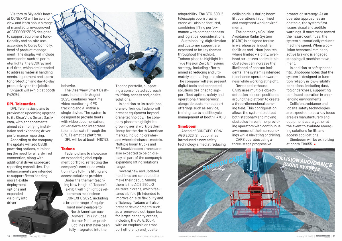 Collision avoidance and jobsite safety technologies are expected to be a key focus area as manufacturers and equipment users gather at the event to evaluate emerging solutions for lift and access applications.