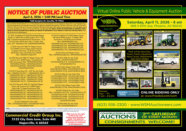 NOTICE OF PUBLIC AUCTION April 6, 2026 • 2:00 PM Local Time
