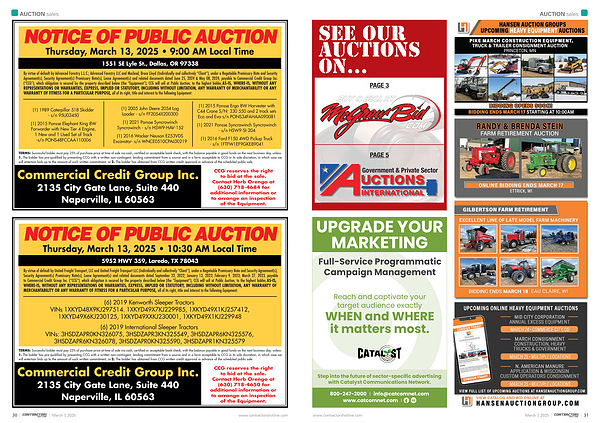 NOTICE OF PUBLIC AUCTION Thursday, March 13, 2025 • 9:00 AM Local Time