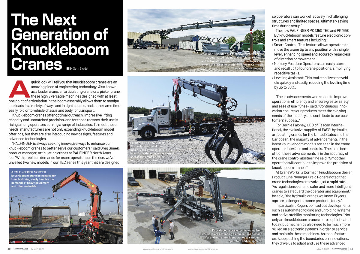 For Bernie Faloney, CEO of Fascan International, the majority of advancements in the latest knuckleboom models are seen in the crane operator interface and controls.