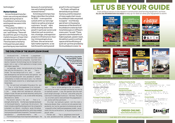 For Sneek, with pent up demand due to purchase hesitancy and the relaxation of many supply chain issues, knuckleboom sales are poised to expand.“ One of the biggest drivers is the growing awareness of the benefits of knuckleboom cranes by traditional telescopic or stiff boom crane users,” he said.“ These operators see the benefits of higher payloads, greater reach, the ability to work in confined spaces and the efficiency of quick set-up times provided by the knuckleboom cranes.”