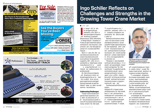 Over the years, Schiller has served as an executive with crane manufacturers and as an advisor to equipment suppliers. With a father who worked for a global tower crane manufacturer in the 1960s and 1970s, he was familiar with the industry long before entering it professionally.
