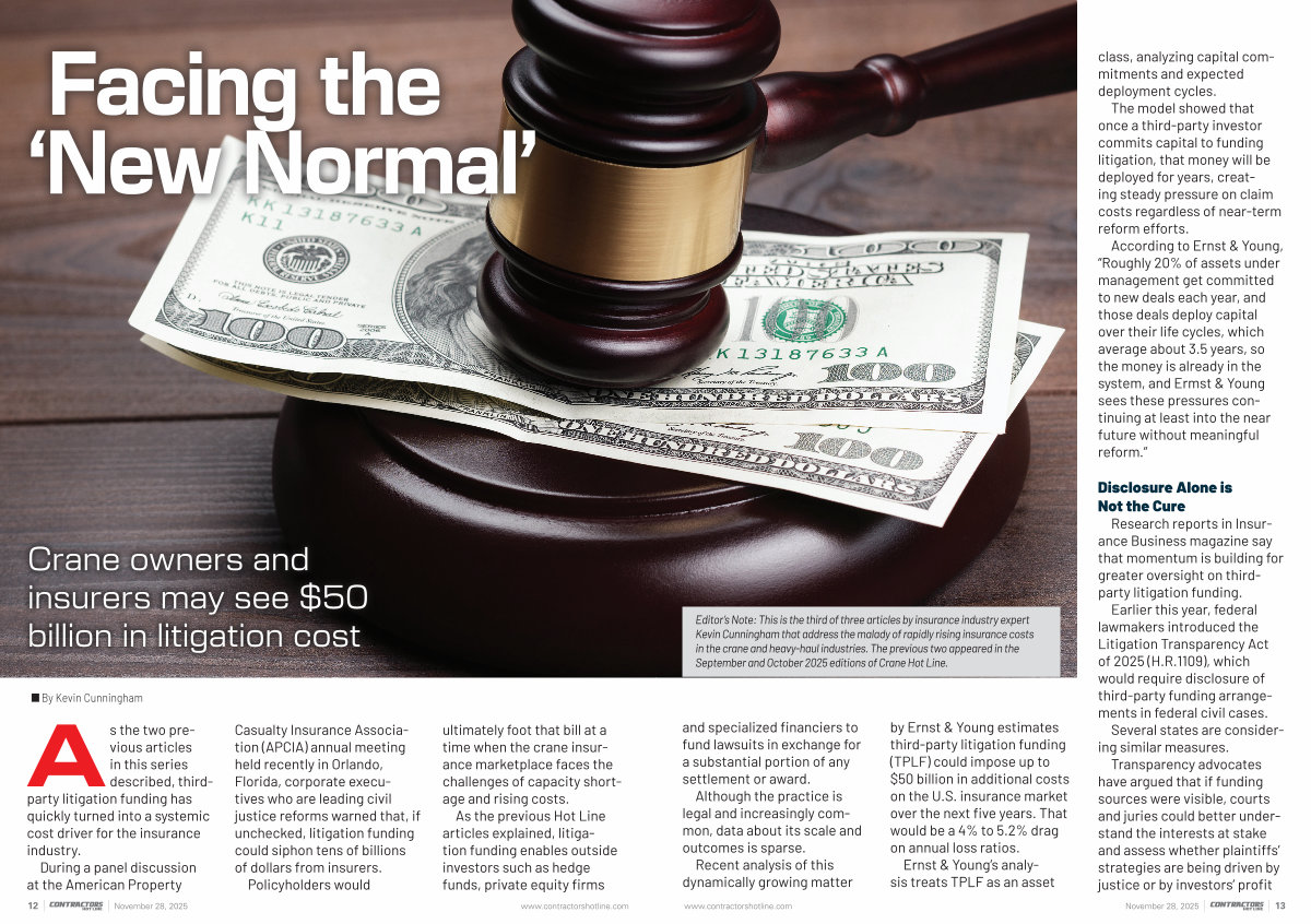 Editor’ s Note: This is the third of three articles by insurance industry expert Kevin Cunningham that address the malady of rapidly rising insurance costs in the crane and heavy-haul industries. The previous two appeared in the September and October 2025 editions of Crane Hot Line.