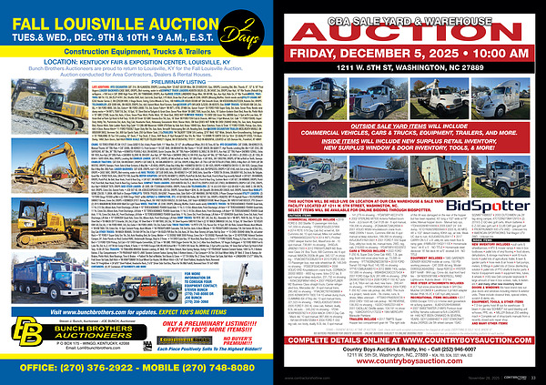 LOCATION: KENTUCKY FAIR & EXPOSITION CENTER, LOUISVILLE, KY Bunch Brothers Auctioneers are proud to return to Louisville, KY for the Fall Louisville Auction. Auction conducted for Area Contractors, Dealers & Rental Houses.