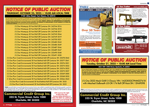NOTICE OF PUBLIC AUCTION Tuesday, October 21, 2025 • 10:00 AM Local Time