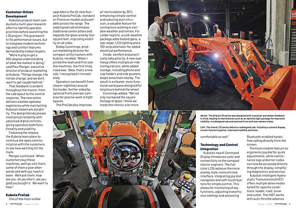 Above: The Grand L70 series was designed with customer and dealer feedback in mind, leading to new features such as an optional light package for improved visibility, a redesigned cab and optional front and rear camera views.