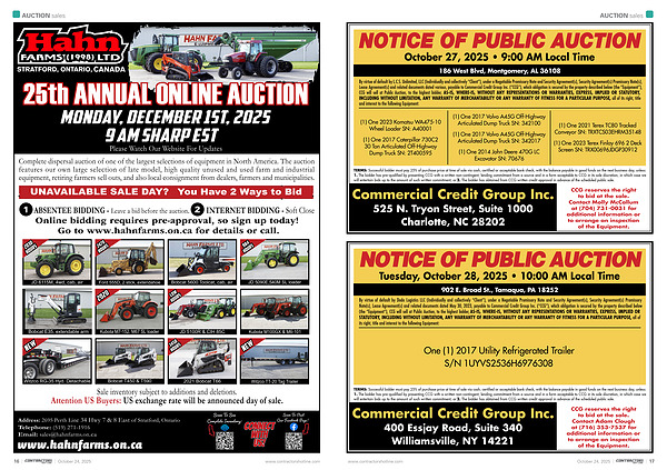 NOTICE OF PUBLIC AUCTION October 27, 2025 • 9:00 AM Local Time