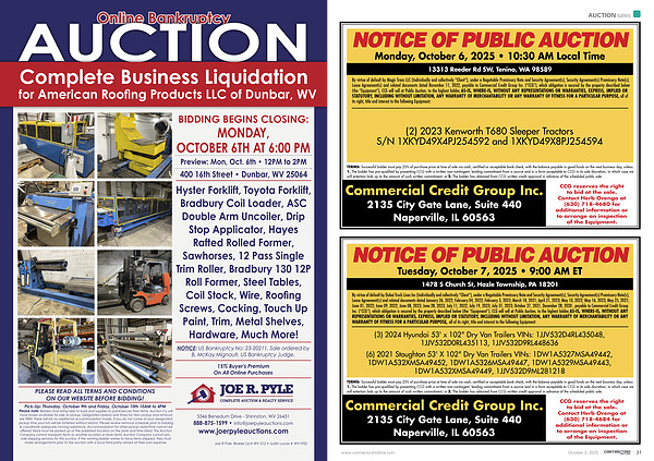 NOTICE OF PUBLIC AUCTION Tuesday, October 7, 2025 • 9:00 AM ET