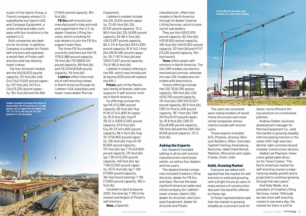 Liebherr offers nine models of self-erecting cranes in North America through its Liebherr USA subsidiary and tower crane dealer Morrow