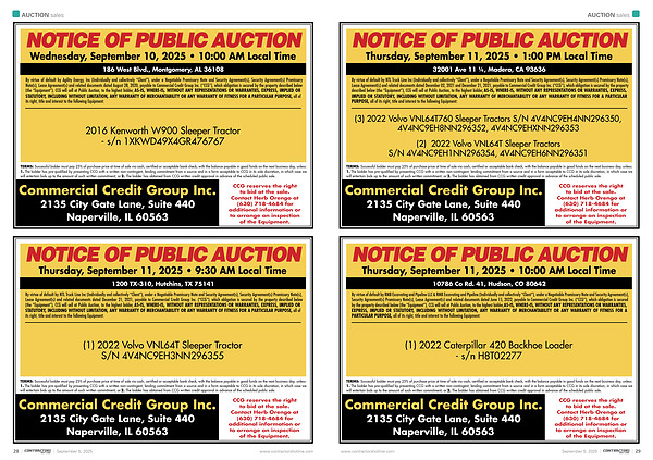 NOTICE OF PUBLIC AUCTION Thursday, September 11, 2025 • 10:00 AM Local Time