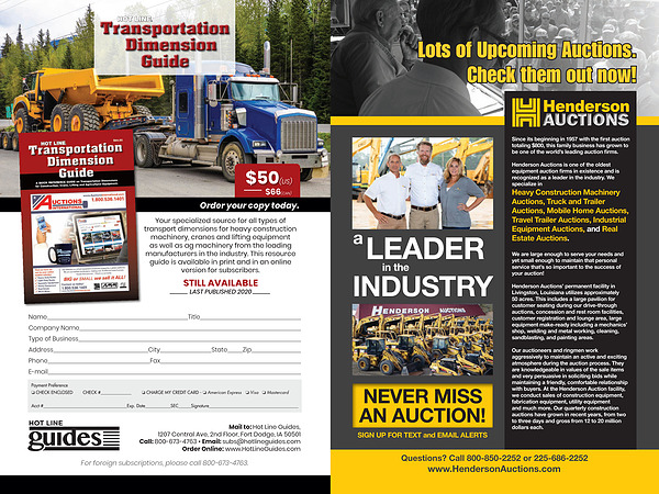 Your specialized source for all types of transport dimensions for heavy construction machinery, cranes and lifting equipment as well as ag machinery from the leading manufacturers in the industry. This resource guide is available in print and in an online version for subscribers.