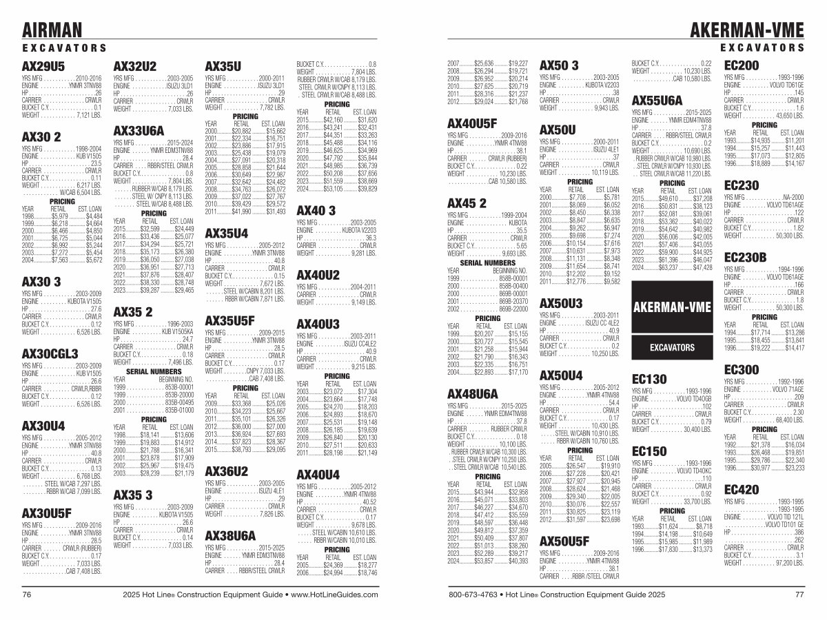 800-673-4763 • Hot Line ® Construction Equipment Guide 2025 77