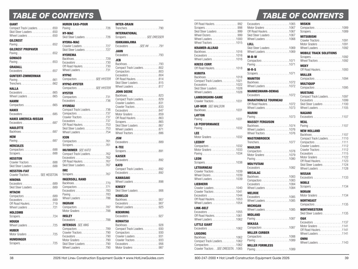800-247-2000 • Hot Line ® Construction Equipment Guide 2026 39