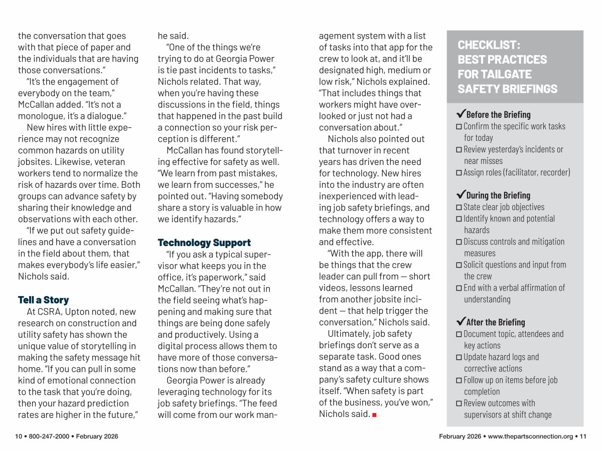 At CSRA, Upton noted, new research on construction and utility safety has shown the unique value of storytelling in making the safety message hit home.“ If you can pull in some kind of emotional connection to the task that you’ re doing, then your hazard prediction rates are higher in the future,” he said.“ One of the things we’ re trying to do at Georgia Power is tie past incidents to tasks,” Nichols related. That way, when you’ re having these discussions in the field, things that happened in the past build a connection so your risk perception is different.”