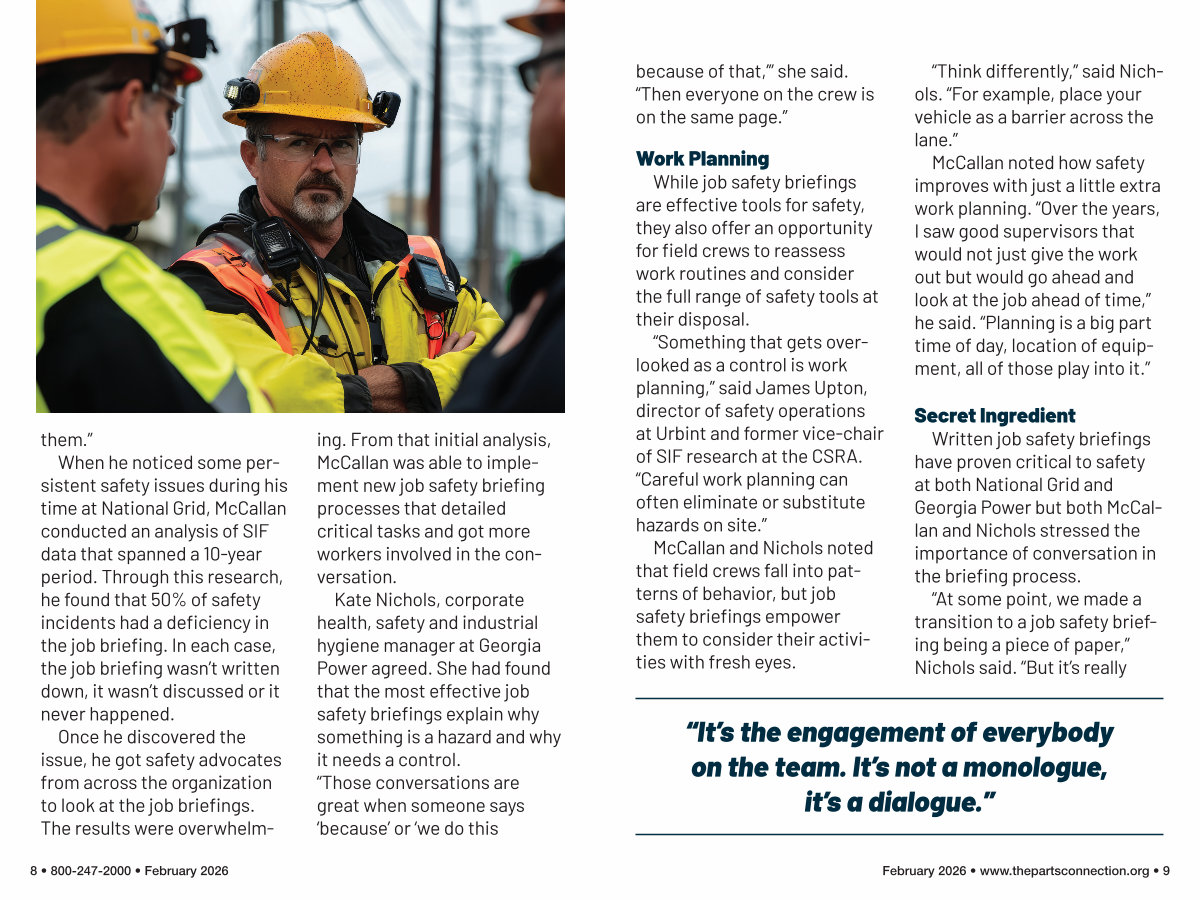 When he noticed some persistent safety issues during his time at National Grid, McCallan conducted an analysis of SIF data that spanned a 10-year period. Through this research, he found that 50 % of safety incidents had a deficiency in the job briefing. In each case, the job briefing wasn’ t written down, it wasn’ t discussed or it never happened.