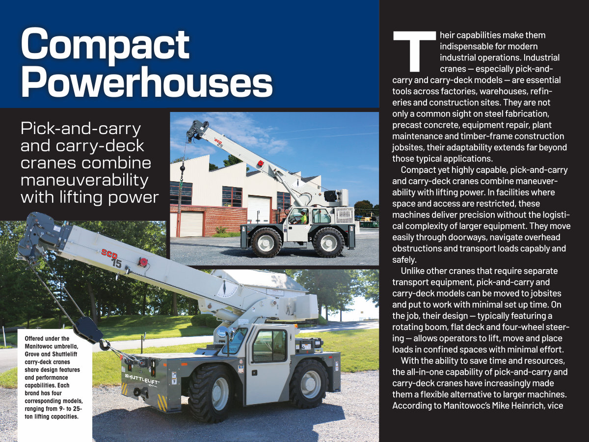 Pick-and-carry and carry-deck cranes combine maneuverability with lifting power